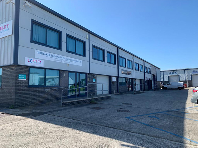 The project was 750m2 split over 4 units each containing warehousing (with roller shutters) and offices separated by acoustic walling in blockwork, in areas adjacent to the warehousing and with stud partitions internally. Each unit contained a mezzanine level which was accessed by a bespoke steel staircase.