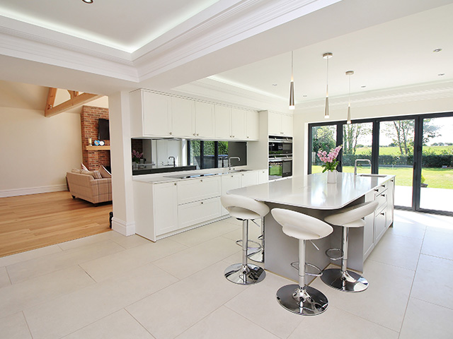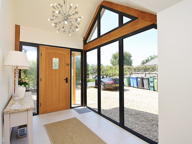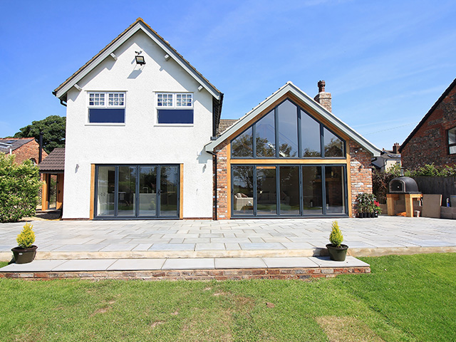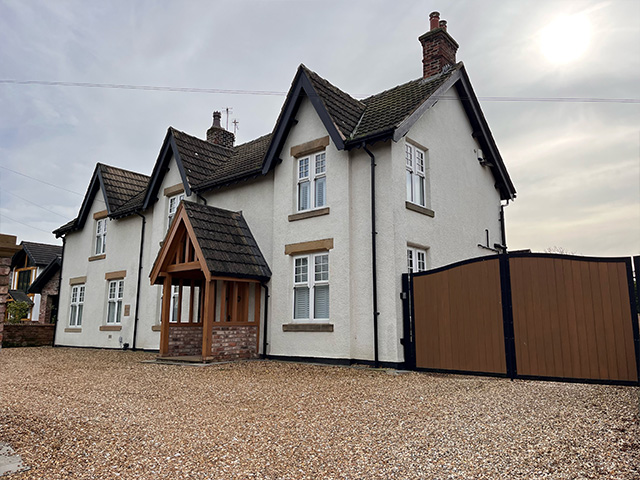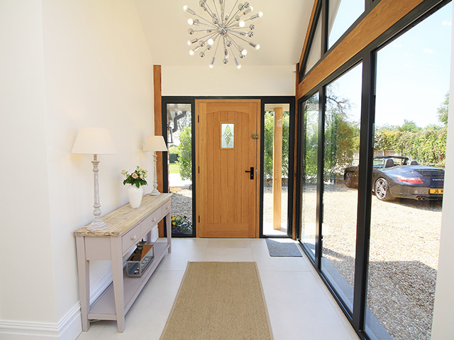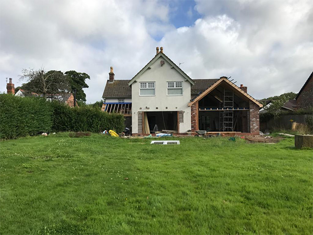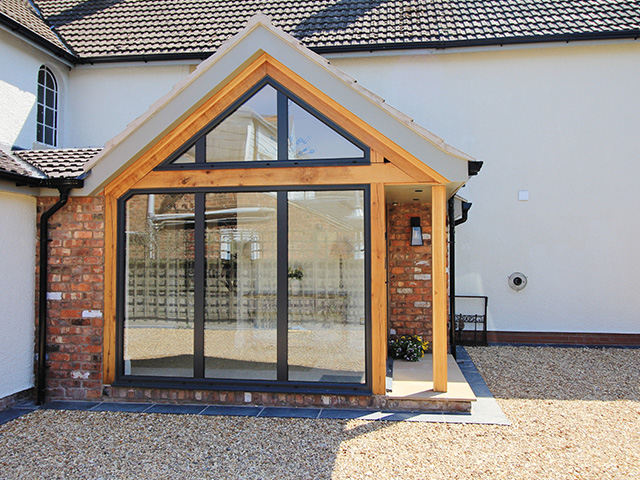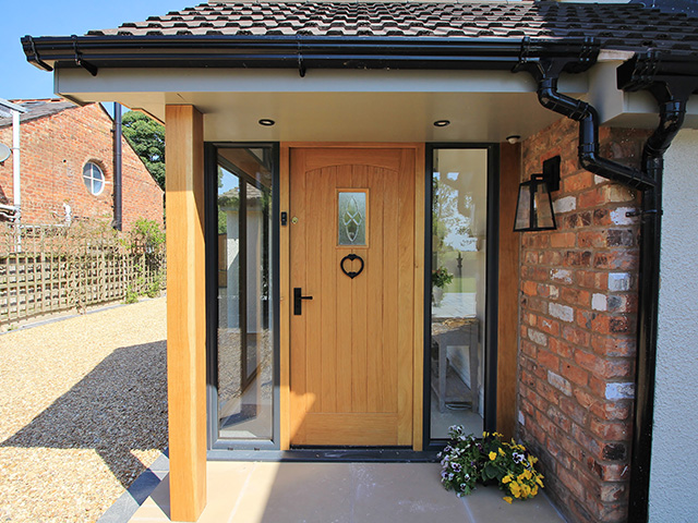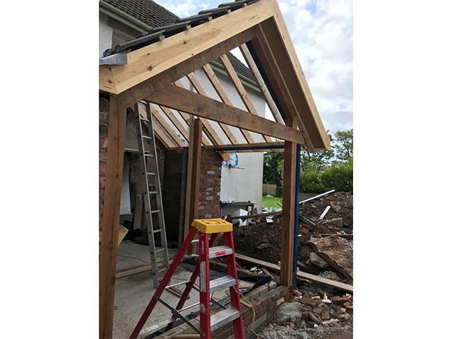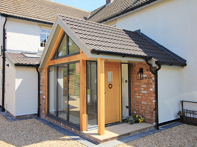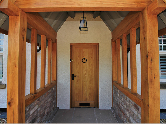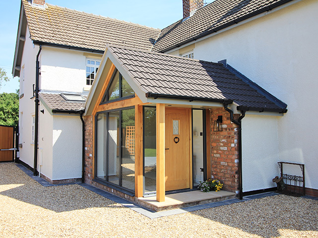 A large rear extension project with internal remodelling. A feature bespoke oak front porch was added.