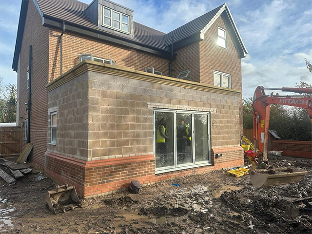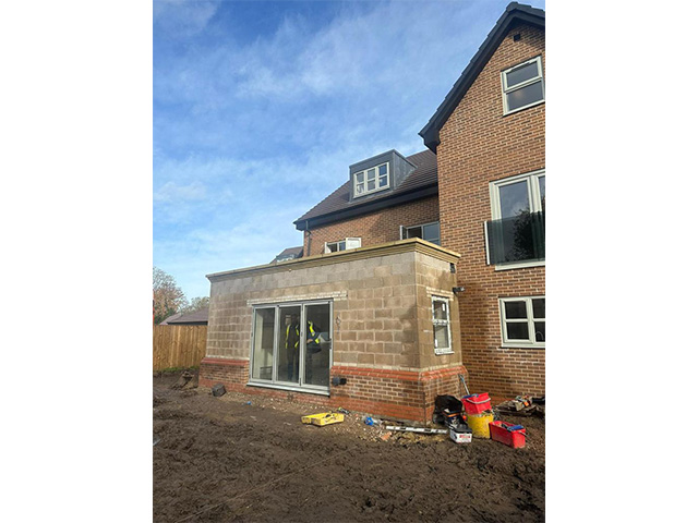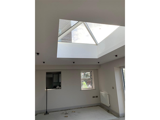 Rear extension with roof lantern on new build development. Opened up to a double kitchen and dining room areas.