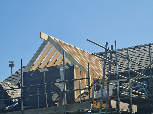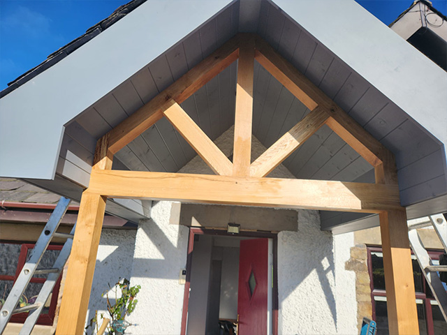 Barn Conversion - Oak Porch and rear roof lift and feature glazed aperture.