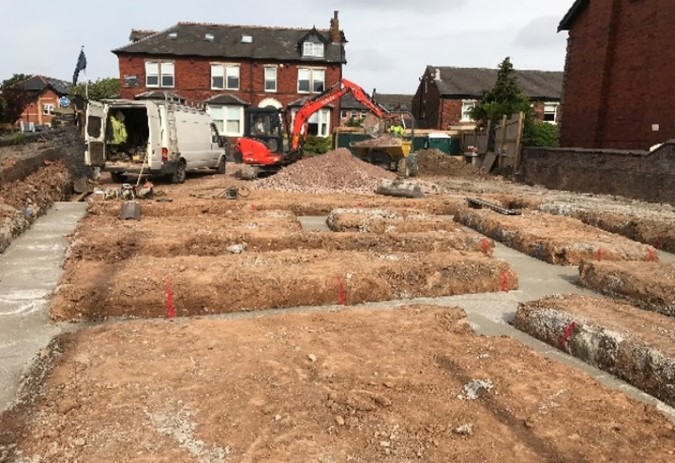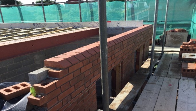 This, traditional built development employed strip footings and presented a wide range of challenges. Firstly, the site was extremely tight with little or no space for storage, which offered significant logistical problems. FJBS Ltd employed a ’just in time’ policy where materials were scheduled to arrive only when needed (an additional benefit of this method meant that as the materials were incorporated straight into the building the risk of damage was greatly reduced).